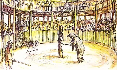 The Paris Gardens was the biggest venue for bear baiting in London, an entertainment Queen Elizabeth greatly enjoyed. One very cold winter, they even held them on the frozen Thames River.
